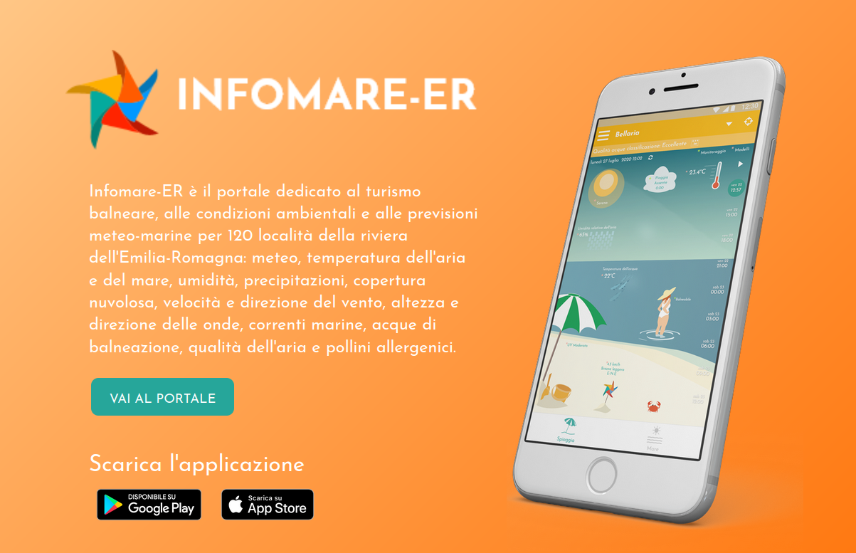 Disponibile per dispositivi con sistemi operativi Android e iOS (Apple), la nuova versione della app aggiunge i dati di qualità dell’aria e dei pollini allergenici alle previsioni meteo e marine e alle informazioni su balneazione, temperature, vento e indice di radiazione ultravioletta (UV). Oltre all’app, è disponibile anche il portale web per restituire la fotografia ambientale della Riviera emiliano-romagnola.